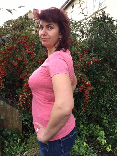 You may notice that sizing is different from other retailers: it goes by height (rather than by chest size). And you have to be slim for the t-shirt to fit you nicely. As you can see from my photos, this is not quite the case with me: I wear jeans that are slightly too tight for me, therefore the t-shirts have highlighted my waist fat that I would rather have hidden – see next photo, too:
