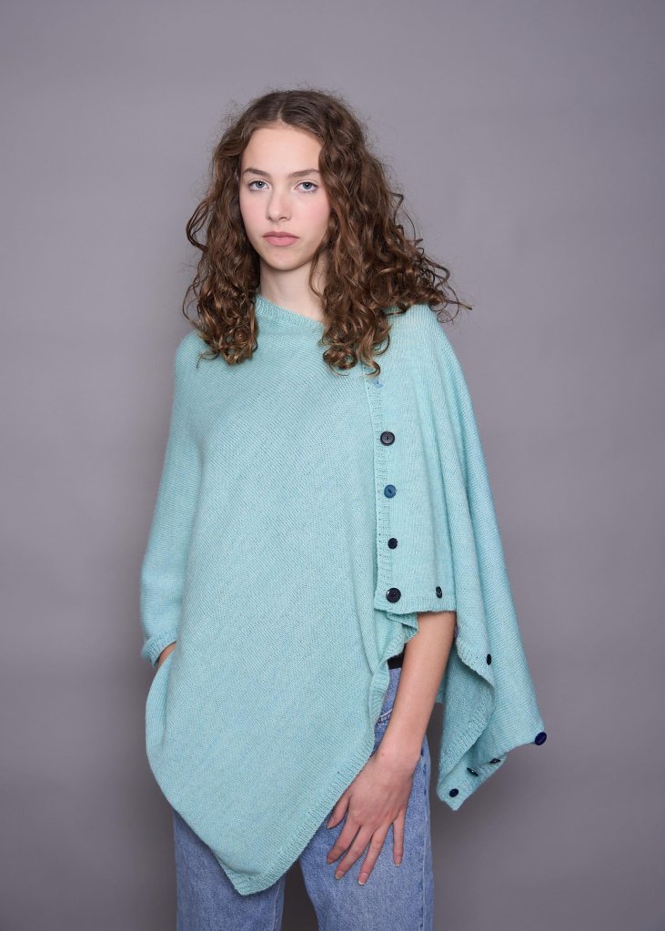 It’s a versatile piece of clothing that can be worn as a scarf and a cardigan, and since it has no sleeves as such, is suitable for people of different height and sizes.